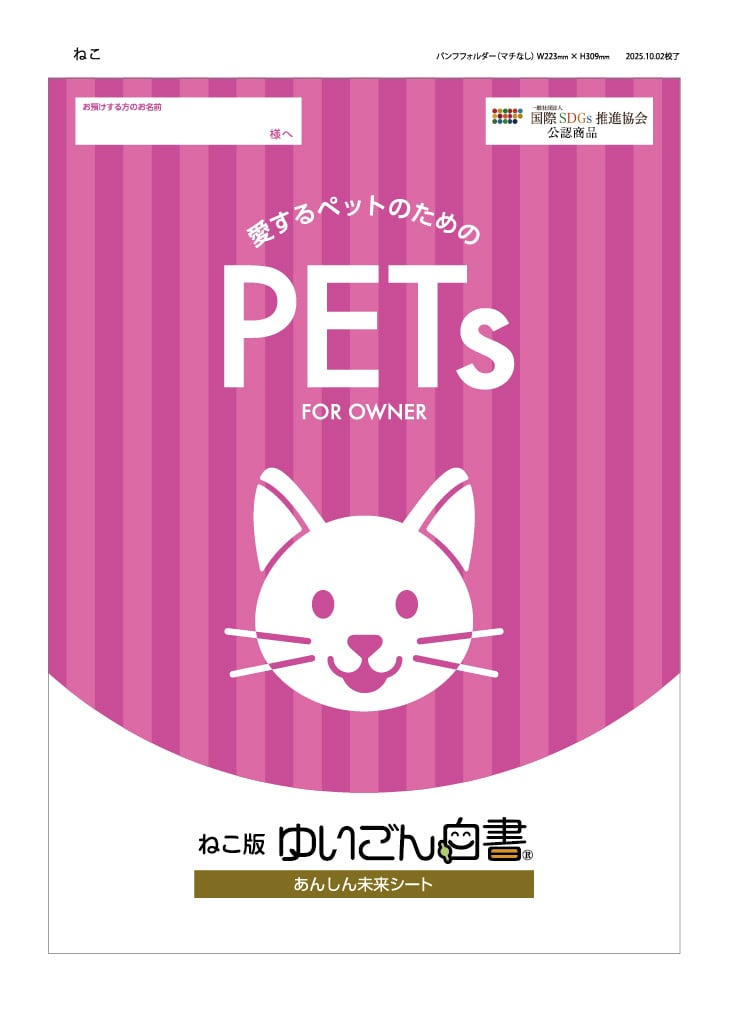 ■多頭飼の方は同時購入に限り、2匹目以上は追加1匹分(ペット版『ゆいごん白書®』シートと封筒2枚付き)1セットを550円に(パッケージと❶❷❸はついていません)